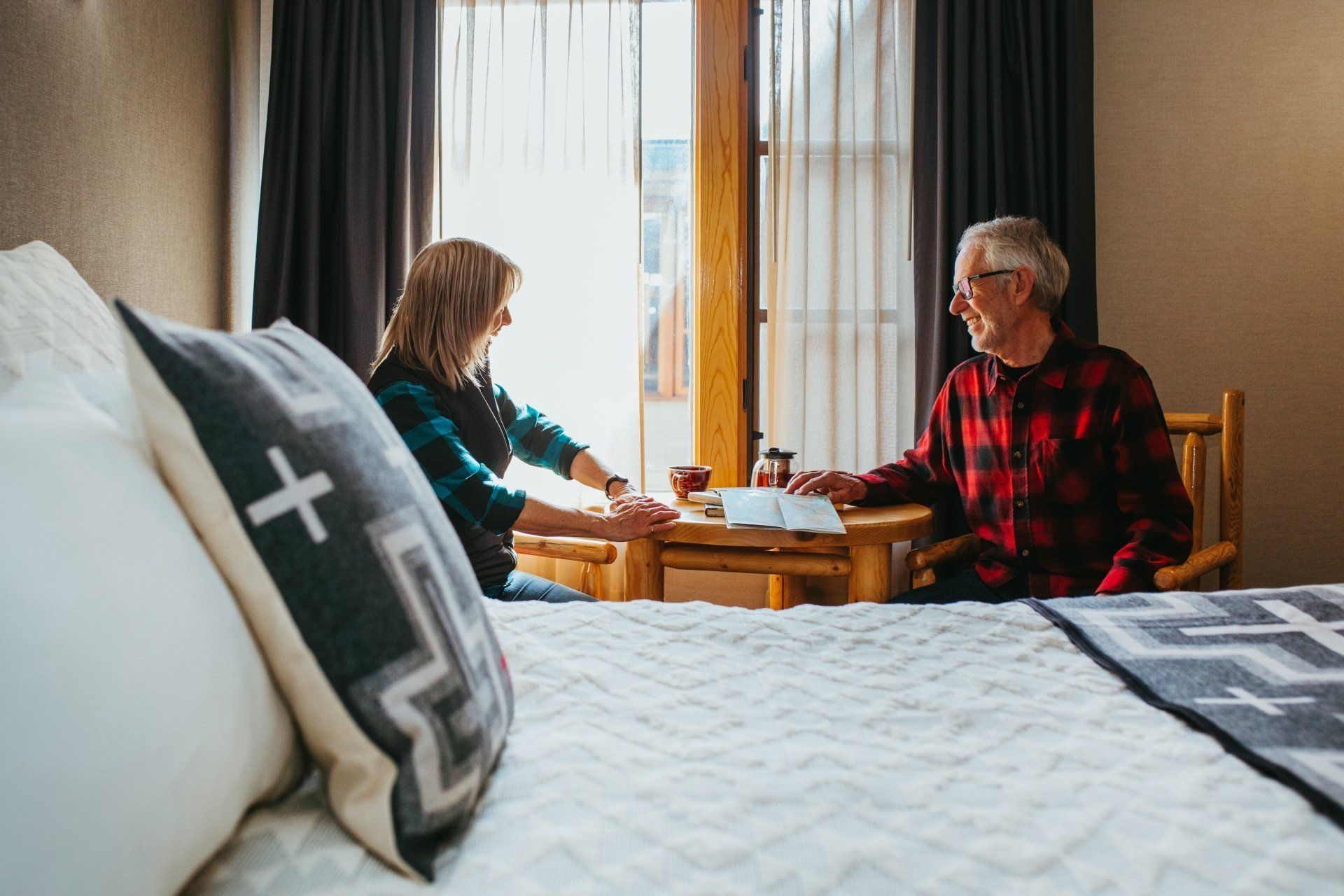 Each guest room and suite comes complete with gorgeous, handcrafted pine wood furnishings and Rocky Mountain-inspired aesthetic. You will also find historical photographs from the Brewster family archives, cozy duvets, beautiful Pendleton blankets, and granite counter, fully tiled bathrooms. All of our rooms also come with a mini-fridge. We honour over a century of Western Canadian history while embracing modern comfort and aesthetic touches to perfectly compliment the awe-inspiring scenery we are nestled within.