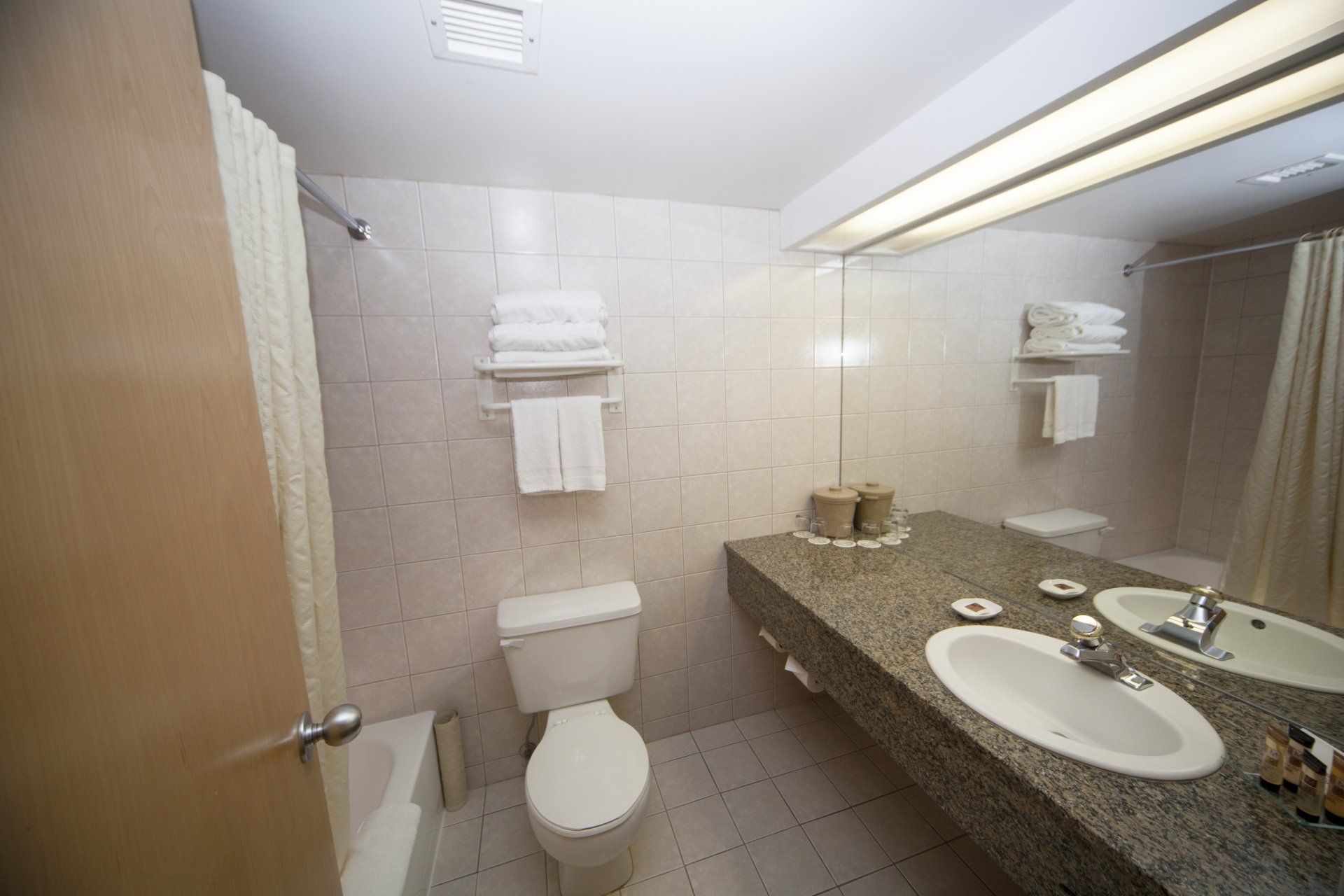 Our inviting standard queen rooms feature the essentials for an enjoyable stay. This double queen bed room is equipped with a coffee maker & kettle with complementary tea and coffee, safe, single flat screen television, and an iron & iron board. Each standard queen room has a full private 3 piece granite & tile bathroom where you will find complementary toiletries including environmentally responsible shampoo, conditioner, body & hand soap, and lotion, as well as a hair dryer.